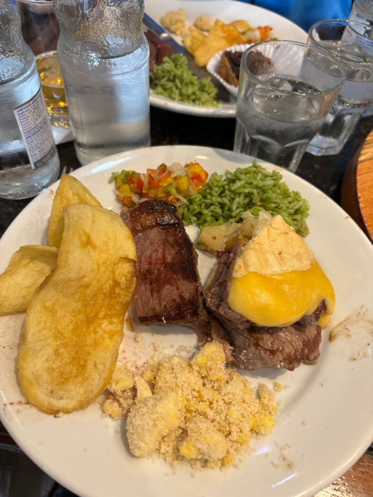 Our tour guide took us to her favorite local restaurant for a late lunch. As in all Brazilian restaurants, meat is the star and there was plenty of it! She recommended a sandwich with thin slices of prime rib, cheese, and grilled pineapple. So yummy!