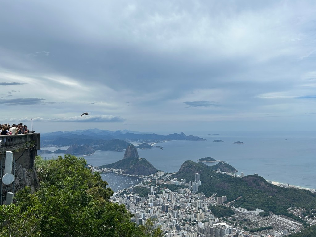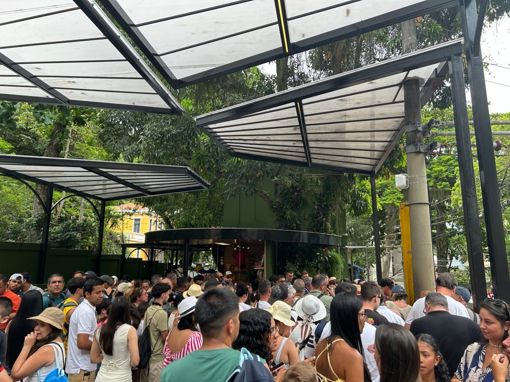 Even though we arrived at the train station to take us to Christ the Redeemer mid-morning, the lines were already long to board the train. Fortunately, we had prebooked “skip-the-line” tickets which shortened our standing time. The scenic train ride took us upward through the Tijuca National Forest to the summit of the mountain.