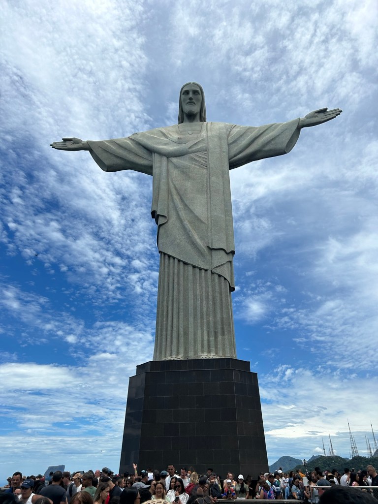 I was unprepared for my reaction as I arrived at the top of Corcovado Mountain and saw the simplistic statue of Christ the Redeemer with His arms stretching over the city of Rio. Hundreds of people were standing at the base of the towering concrete and sandstone monument, and all were looking up, some noisily jostling for a better view, others extending their cameras high up to get the perfect photo, and a few reverently praying. I looked around at the multi generations and heard various languages being spoken by brightly dressed visitors. And during the overload of sights and sounds, I looked up at those open arms of Jesus and wondered how many of the people crowded around below really knew the love, joy, and hope that Christ, our Redeemer offers to all. It was a sobering thought that stayed with me throughout the day.